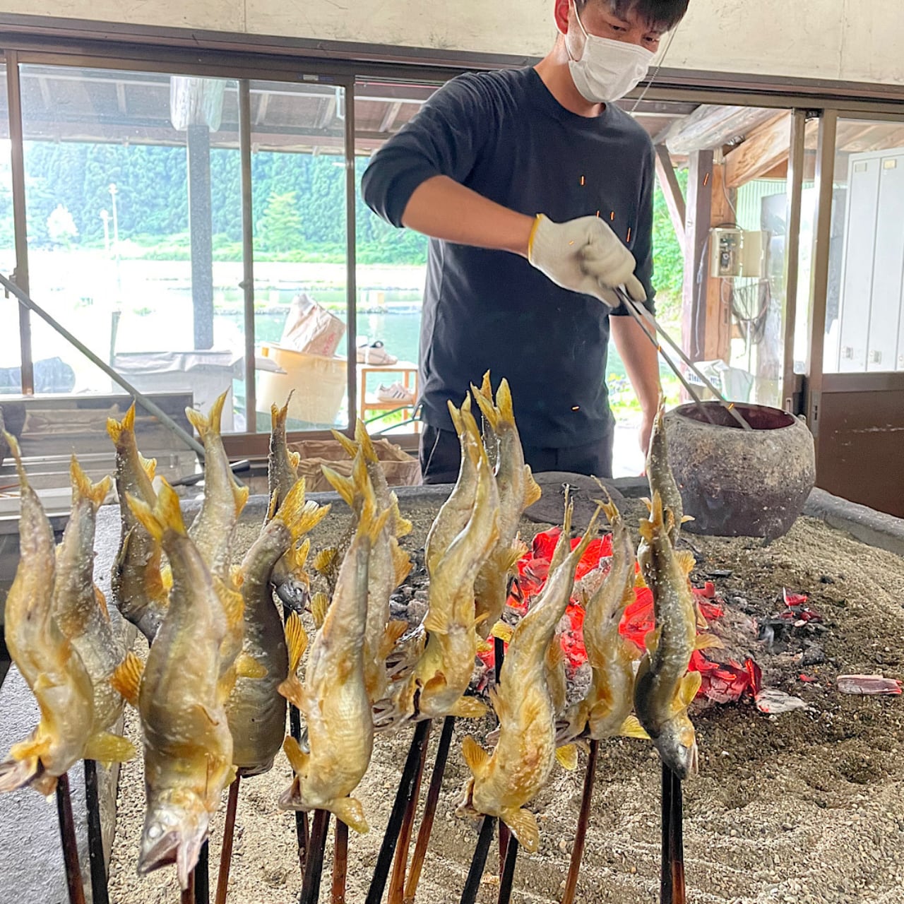 秋田県は気温が低いため、他地域の鮎より小ぶりではありますが、そのぶん身が詰まった脂の乗った鮎を育てています。