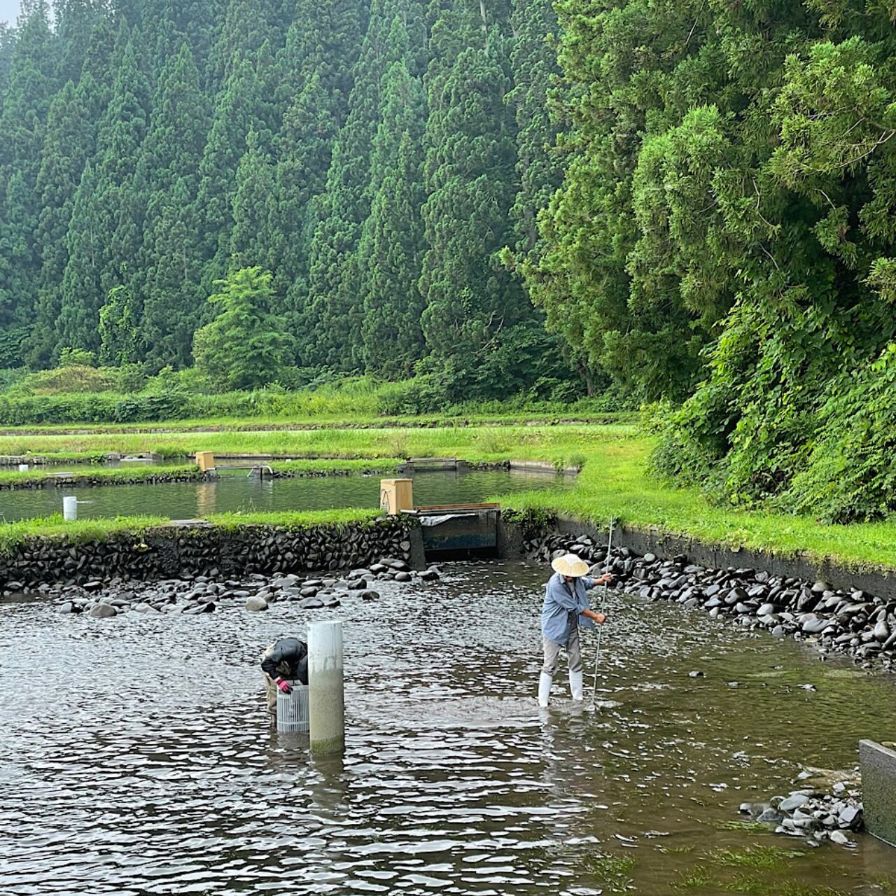 まだ雪深い頃は豊富な水量、鮎に適した水温の恵まれた地下水で育て、雪解けの頃に秋田随一の清流・雄物川(おものがわ)の川の水を引き入れ、より自然に近い環境にすることで、"香魚”の名にふさわしい味が濃く香り高い、天然の鮎に近い鮎に成長します。